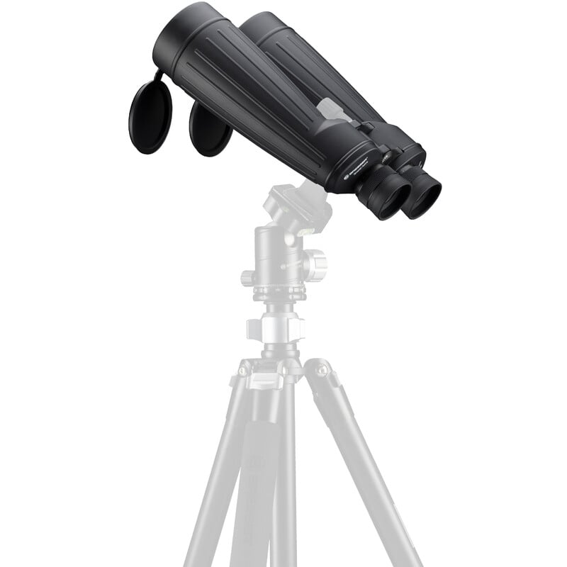 Bresser 15x70 verrekijker schuin vooraanzicht met geopende lensdoppen en grote objectieven