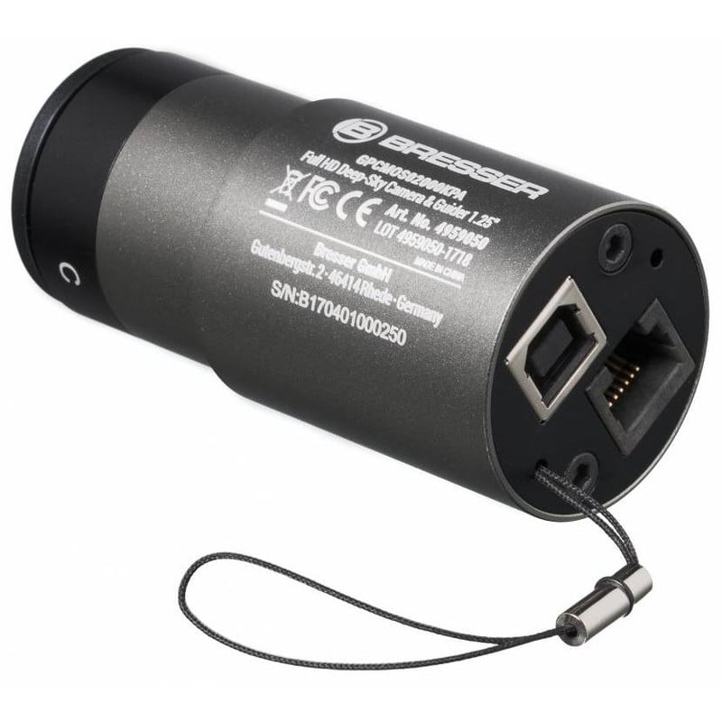 Bevestig de prismaklem op de draaggreep van je Bresser Messier of Explore Scientific telescoop. Monteer de AR90/500 geleidetelescoop ernaast, sluit de camera via de ST-4-poort aan en verbind met je computer via USB. Binnen minuten kun je beginnen met automatische guiding – zodat jouw sterren niet langer uit beeld glijden.