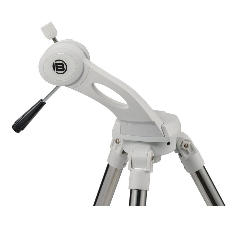 Het roestvrijstalen driepootstatief zorgt voor stabiliteit bij elke observatie. Zelfs bij lichte wind blijft je beeld rustig en scherp. De montering zelf is robuust maar licht, zodat je hem gemakkelijk kunt meenemen naar je favoriete waarneemplek.