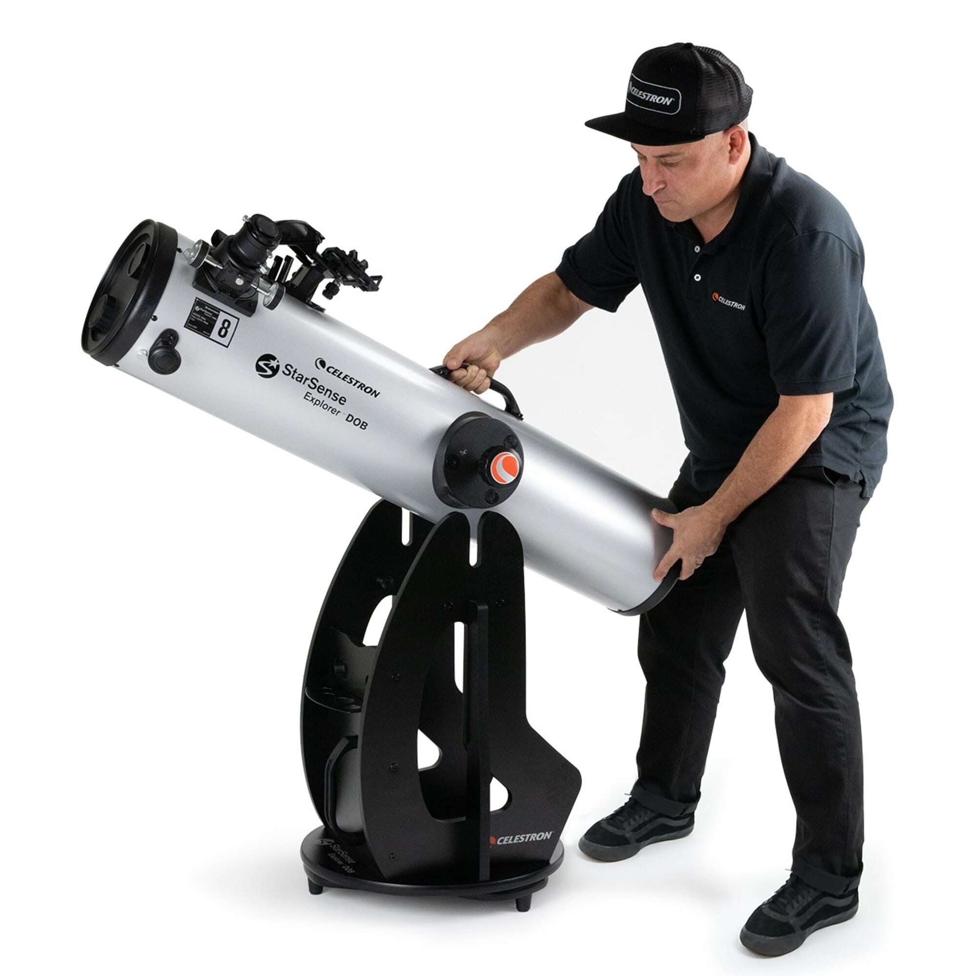 Celestron Dobson Telescoop N 203/1200 StarSense Explorer DOB combineert een grote opening van 203 mm met de digitale ondersteuning van de StarSense Explorer-app. Je smartphone navigeert je stap voor stap door de sterrenhemel: open de app, scan en volg de pijlen naar het gekozen object. Geen uitlijning, geen complexe instellingen, alleen richten en observeren.