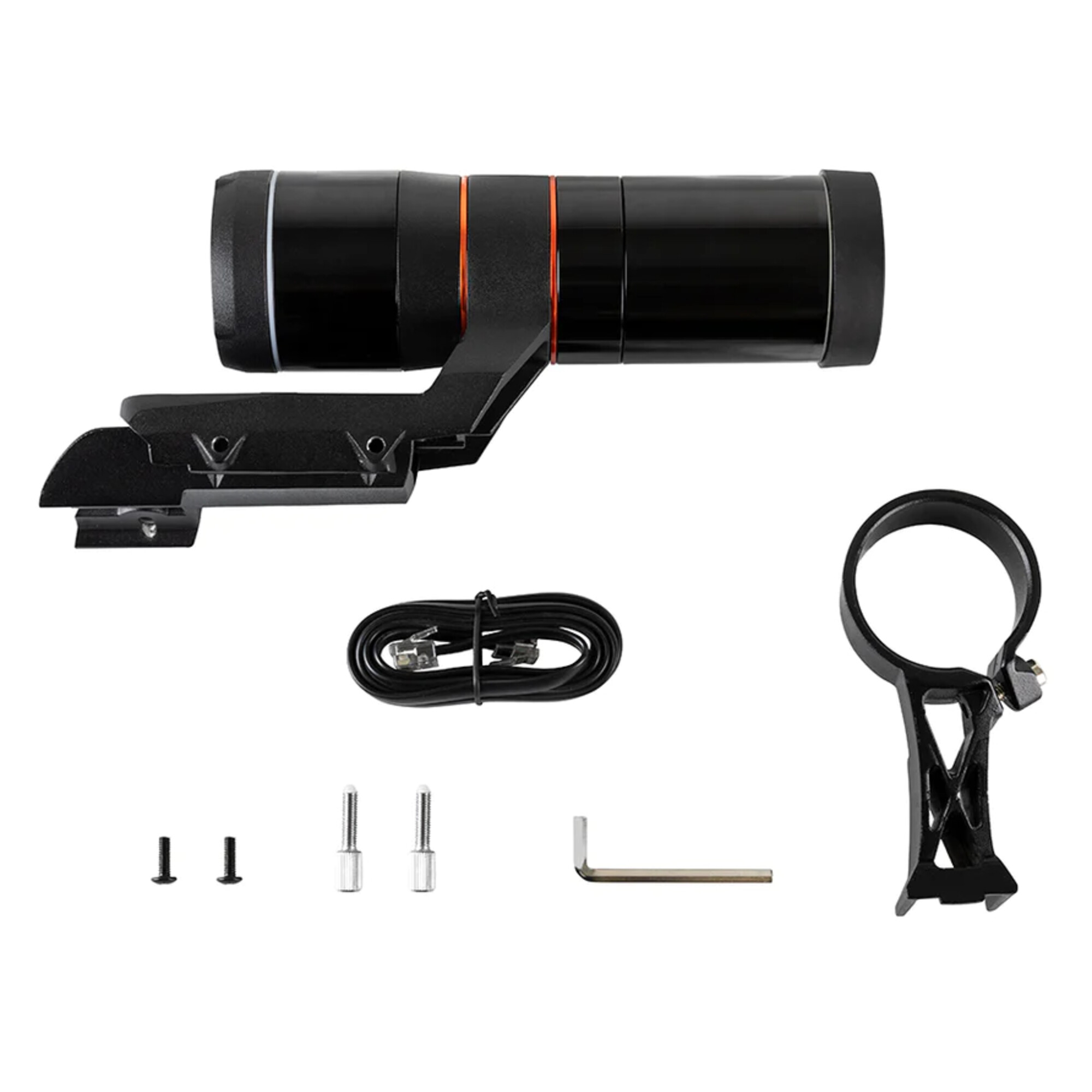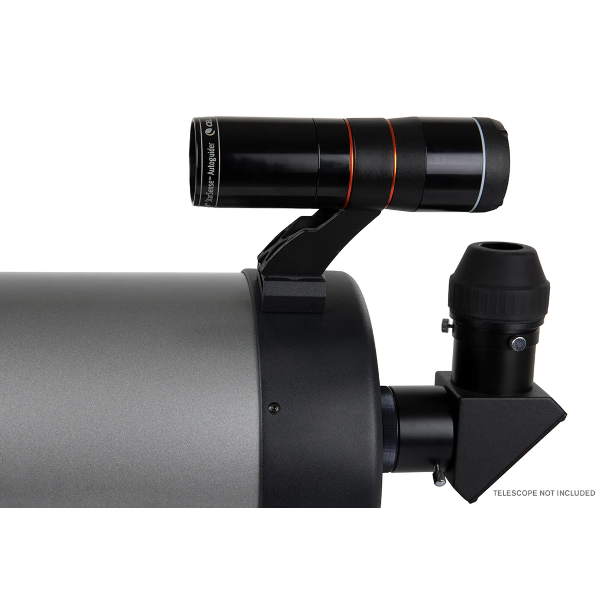 Celestron heeft de optiek laten ontwerpen door Mark Ackermann, een naam die bekendstaat om kleine optische systemen met uitzonderlijk hoge scherpte. De vierdelige, volledig multicoated lens (28 mm opening, 120 mm brandpuntsafstand) zorgt voor een helder en contrastrijk beeld dat essentieel is voor betrouwbaar guiden.