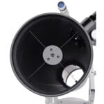 De optiek met f/6-verhouding vangt enorm veel licht en maakt observaties mogelijk tot een grensmagnitude van 13,3. Onder een donkere hemel zie je duizenden sterren in bolhopen zoals M13 in Hercules en subtiele nevelstructuren in de Orionnevel. De dunne vangspiegelsteunen zorgen voor minimale diffractie, waardoor sterrenpuntjes scherp blijven.