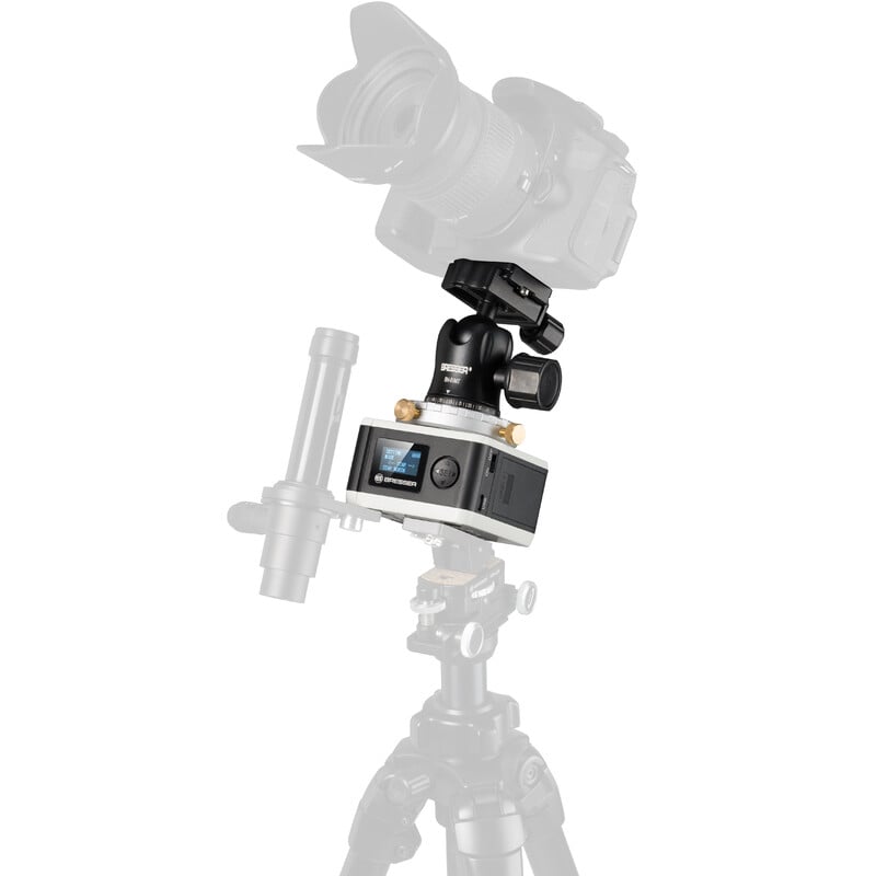Binnen vijf minuten is de montering opgesteld en uitgelijnd. Richt eenvoudig op de Poolster via de ingebouwde poolzoeker, bevestig je camera op het stevige balhoofd, en je bent klaar voor belichting. De bediening via het heldere LC-display is intuïtief en overzichtelijk.