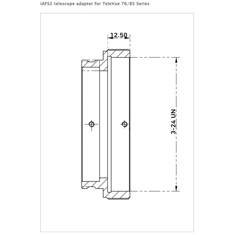 The iOptron Adapter iAFS2 / TeleVue 76/85 zorgt voor een precieze en stevige aansluiting van je iOptron iAFS2 focuser op TeleVue 76 en 85 telescopen. Dankzij de 3″-24TPI schroefdraad past hij exact, zonder speling of aanpassing.