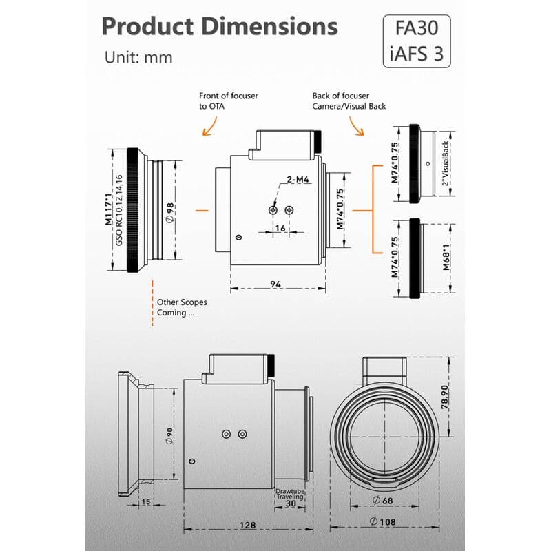 De iAFS3 2″ heeft een nauwkeurigheid van 0,4 µm. Hij wordt geleverd met een 2-inch visual back en USB-C-kabels voor eenvoudige aansluiting op je computer. Compatibel met ASCOM & INDI, ideaal voor visueel gebruik en astrofotografie.