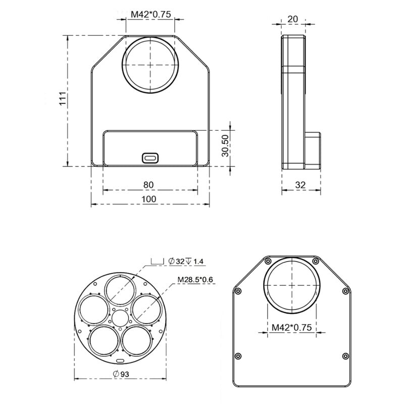 Dit gemotoriseerde filterwiel biedt ruimte voor 5 filters. Je kunt 1,25″ filters met montuur gebruiken of 31 mm filters zonder montuur. Ideaal als je vaak wisselt tussen LRGB of smalbandfilters. De compacte bouw houdt je setup licht en goed in balans – perfect voor astrofotografie met kleine tot middelgrote telescopen.