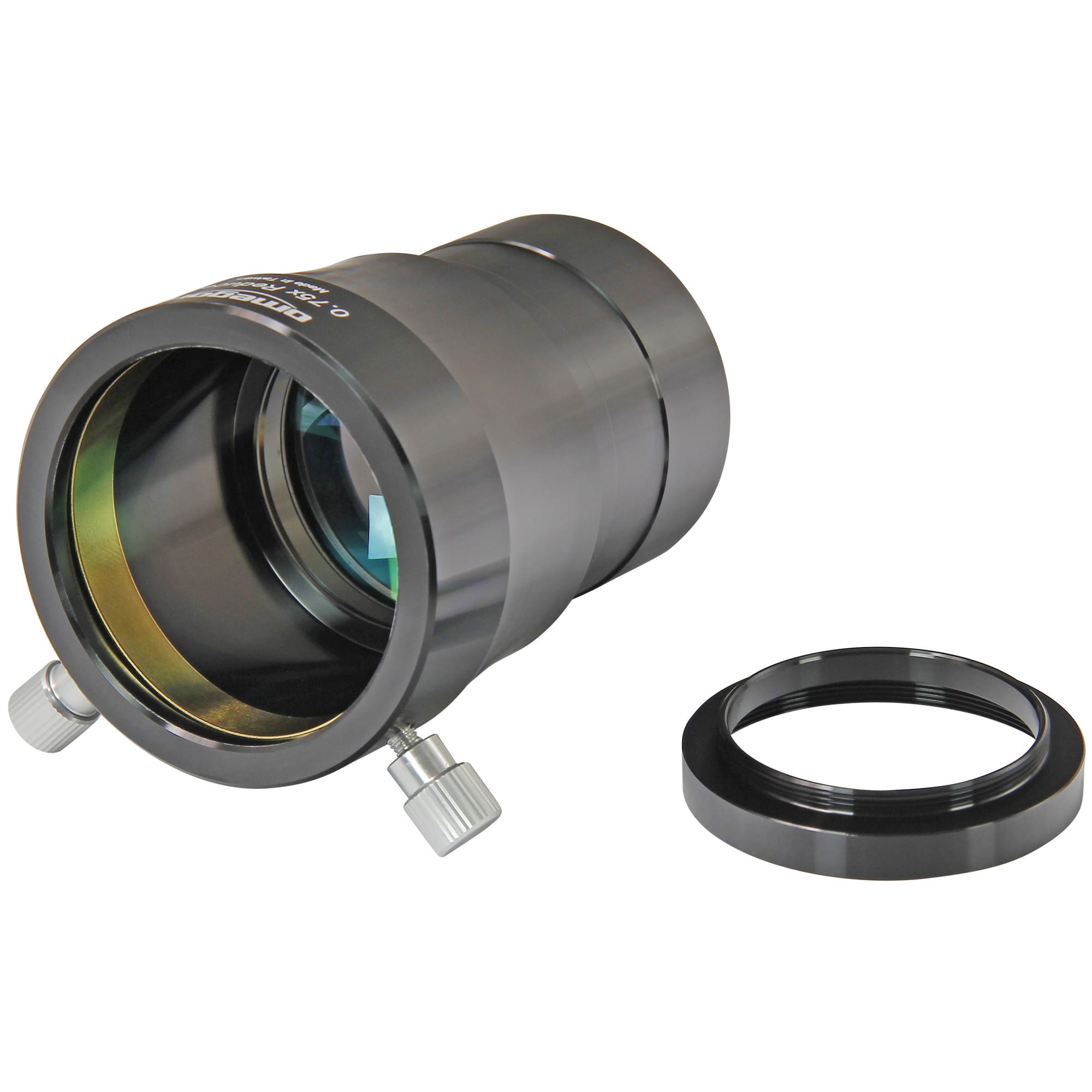 Omegon Pro Reducer 0.75x voor RC-telescopen verkort de brandpuntsafstand van een Ritchey-Chrétien telescoop met een factor 0,75. Daarmee verandert een f/8-systeem in een sneller f/6-systeem, waardoor je veel kortere belichtingstijden nodig hebt en meer hemelobjecten kunt vastleggen in één opname.