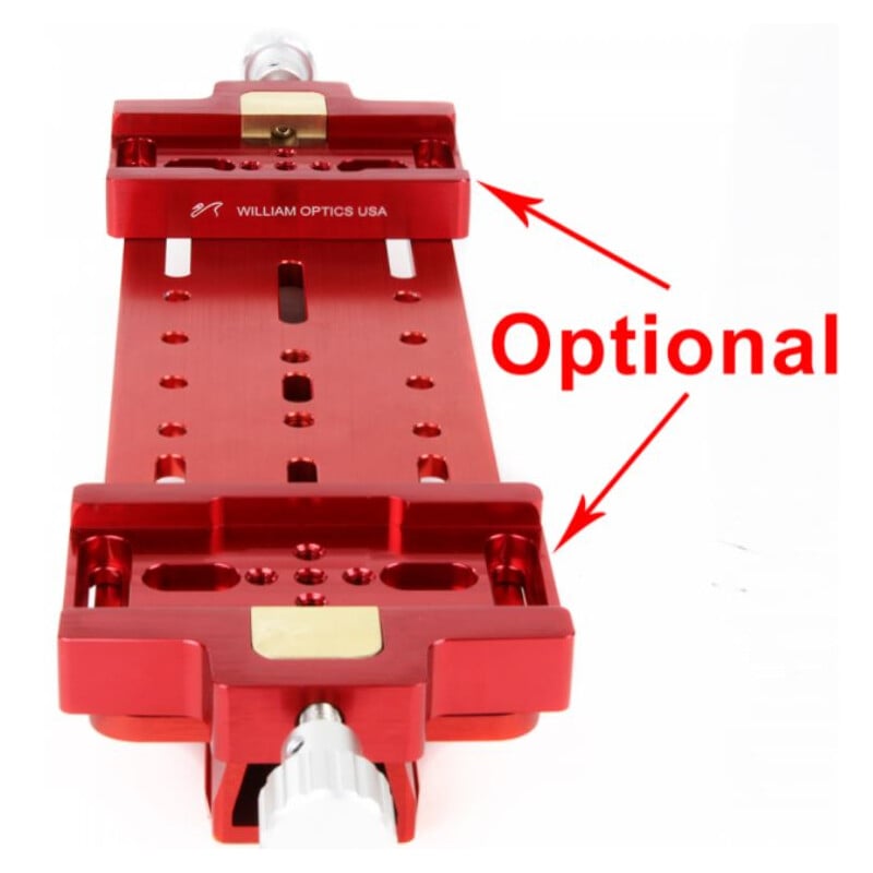 De plaat is gemaakt van sterk aluminium. Licht genoeg om makkelijk mee te nemen, maar stevig genoeg om je optiek veilig te dragen. De rode afwerking past naadloos bij andere William Optics onderdelen en maakt je setup meteen professioneler.