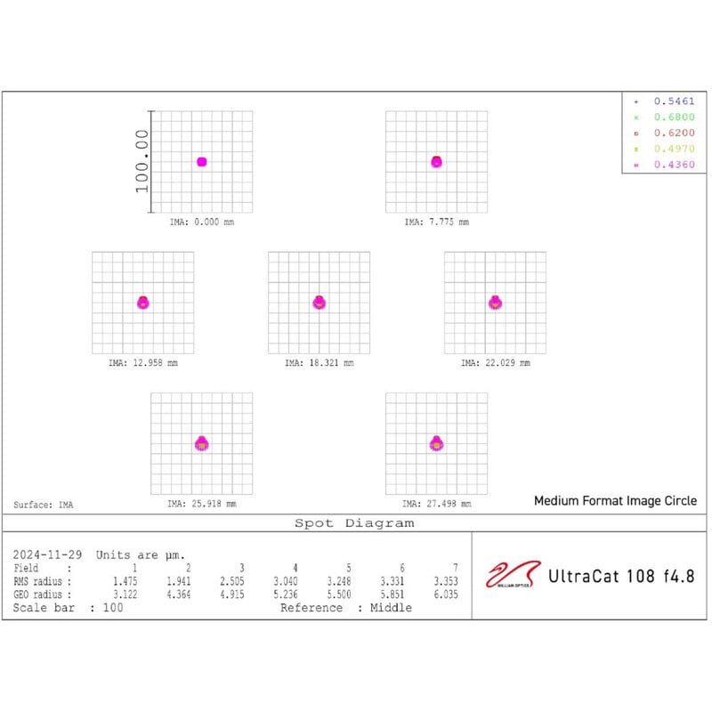 Met zijn 108 mm opening vangt deze refractor veel licht. Dat betekent korte belichtingstijden en scherpe details, zelfs bij zwakke nevels of sterrenvelden. De f/4.8 lichtsterkte maakt de telescoop ideaal voor brede hemelopnamen en grote deep-sky-objecten.