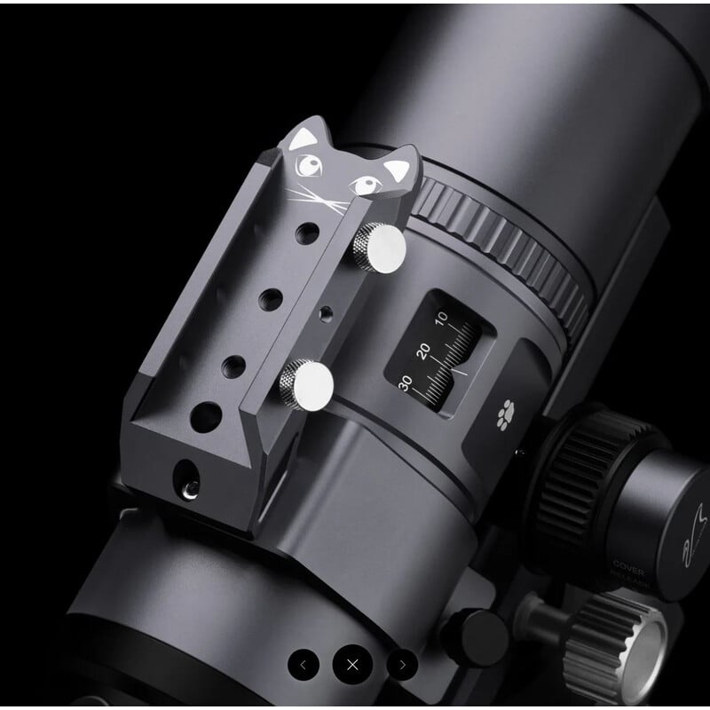 De 110 mm zwaluwstaart geeft je drie montage-opties:Arca-Swiss, Vixen of gewone statiefschroef.Zo zet je de telescoop makkelijk op een fotostatief, een star tracker of een astronomische montering.Handig als je vaak buiten fotografeert of veel reist.
