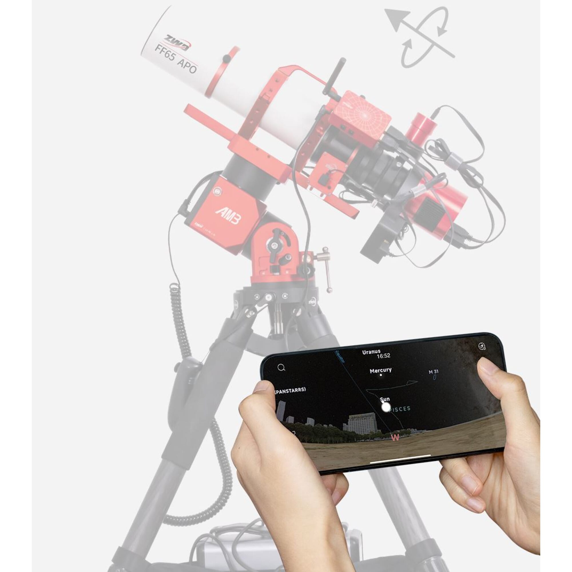 ZWO applies harmonic drive technology from robotics, ensuring extremely smooth tracking and minimal backlash. The AM3 works in both equatorial mode (for astrophotography) and alt-azimuth mode (for visual observation or planetary work), with a simple switch between the two. A status LED clearly shows which mode is active: red for EQ, green for AZ.