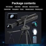 - Lensdiameter: 80mm lensopening voor heldere, gedetailleerde beelden van sterren en hemellichamen.