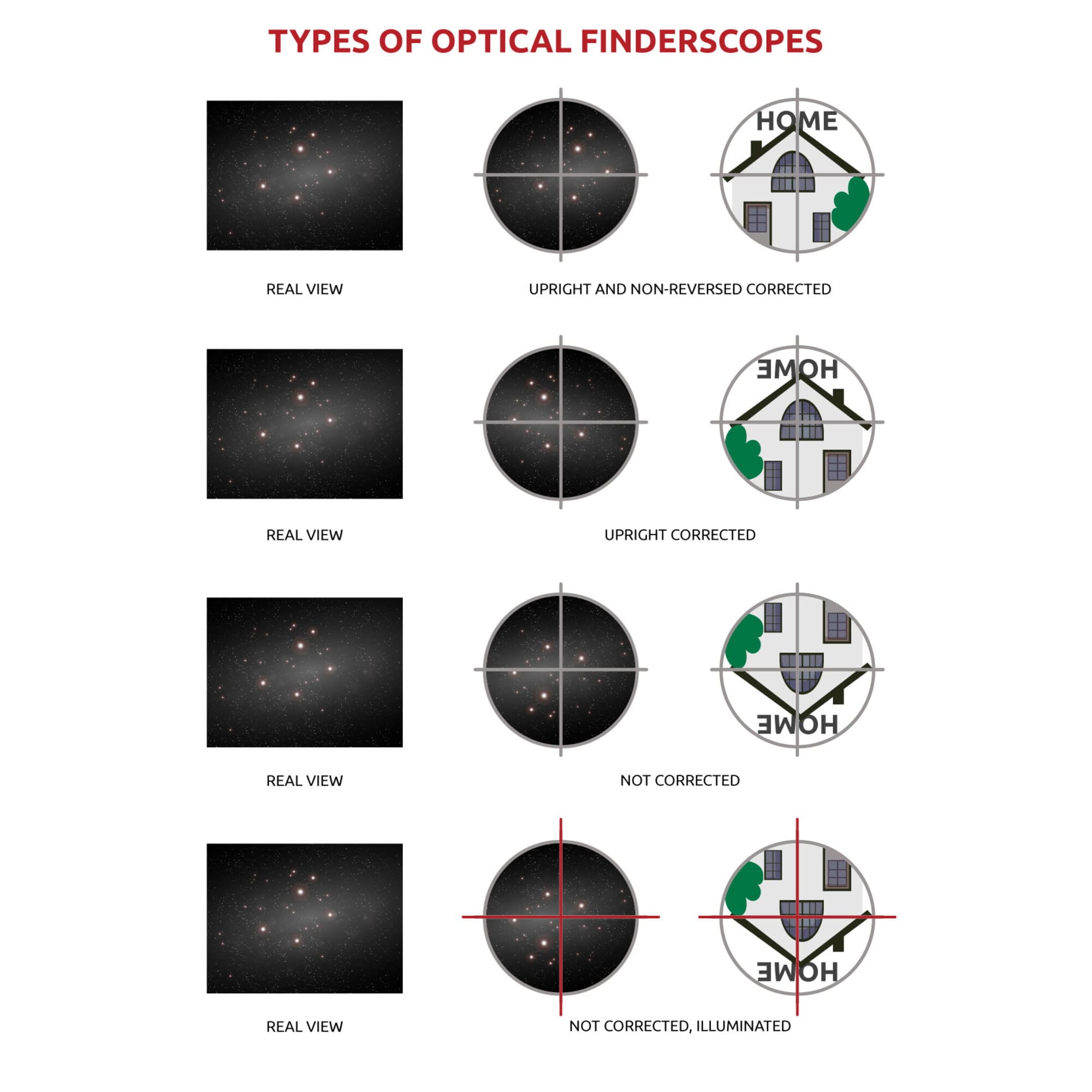 Ideaal voor waarnemers die hun telescoop snel en intuïtief willen richten. Vooral geschikt wanneer je met een sterrenkaart werkt of bij het leren navigeren langs de sterrenhemel.