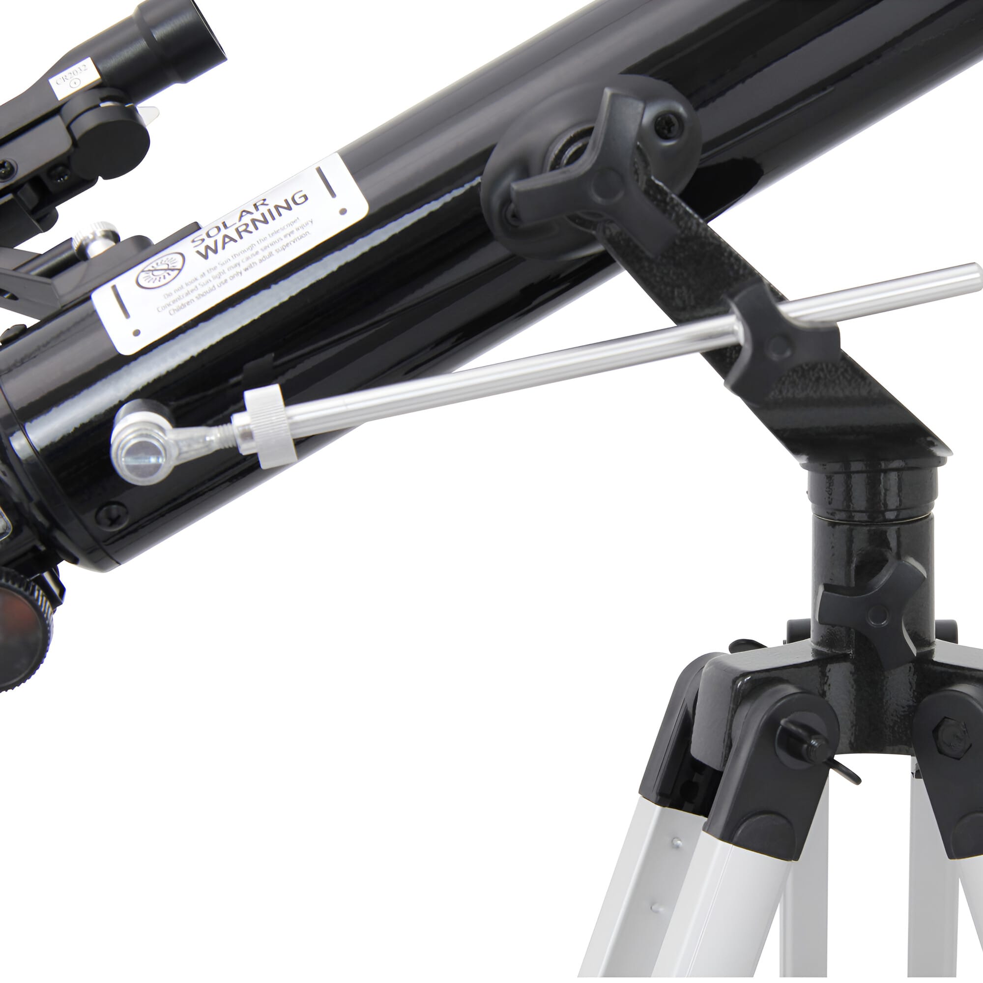 De eenvoudige AZ-1 montering maakt het richten intuïtief: je beweegt de telescoop simpelweg naar boven, beneden of opzij, zonder ingewikkelde instellingen. De telescoop wordt compleet geleverd met meerdere oculairs, een Barlow-lens en een red-dot zoeker, zodat je direct kunt beginnen.