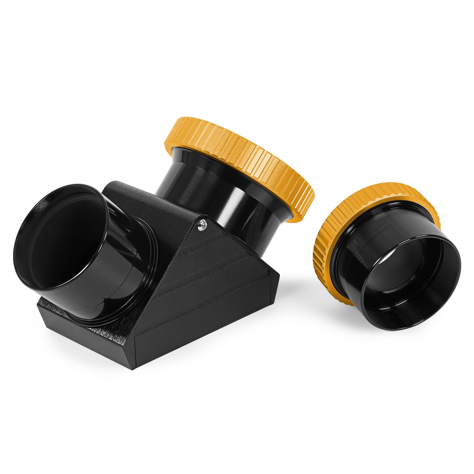 De solide behuizing is gebouwd voor gebruik met zware 2” oculairs en biedt een ringklem die je oculairs veilig en krasvrij vastzet. Dankzij de geïntegreerde 2” filterschroefdraad gebruik je eenvoudig maan-, kleur- of nevelfilters. Dit prisma is compatibel met alle refractors, Schmidt-Cassegrains en Maksutovs met een 2” focuser, en geeft je maximale flexibiliteit voor zowel 2” als eventueel 1,25” oculairs met adapter.