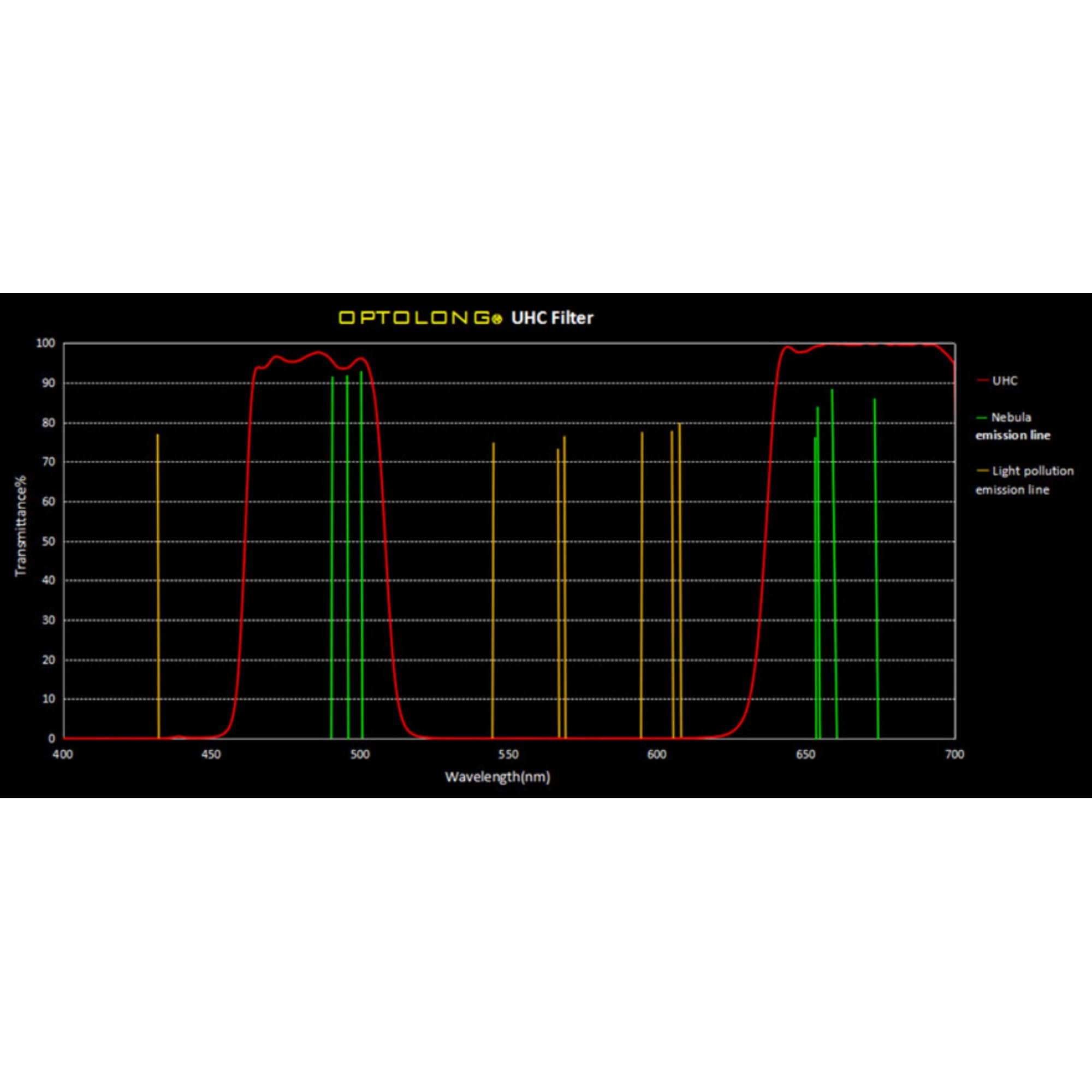 Het UHC (Ultra High Contrast) ontwerp laat de belangrijkste emissielijnen van deep-sky objecten door, zoals H-alfa, H-bèta en OIII, terwijl storend kunstlicht van natrium- en kwiklampen effectief wordt geblokkeerd. Hierdoor verschijnt de hemelachtergrond donkerder en worden nevels, sterrenhopen en melkwegvelden duidelijk contrastrijker vastgelegd. Zelfs in gebieden met aanzienlijke lichtvervuiling blijft het mogelijk om langere belichtingstijden te gebruiken zonder storende overbelichting.