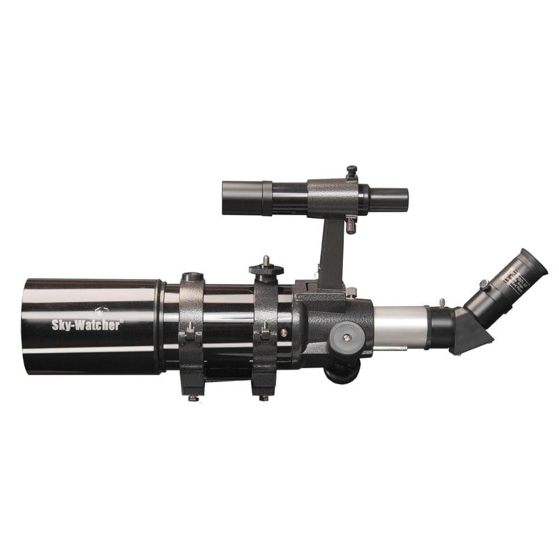 Skywatcher AC 80/400 wordt geleverd met compacte StarTravel OTA, 25mm- en 10mm-oculair, 2x Barlow-lens, 6×30-zoeker, 1,25″ 45° Amici-prisma en de 80-pagina’s beginnershandleiding Telescope ABC – ideaal voor groothoekwaarnemingen van maan, planeten en natuur.
