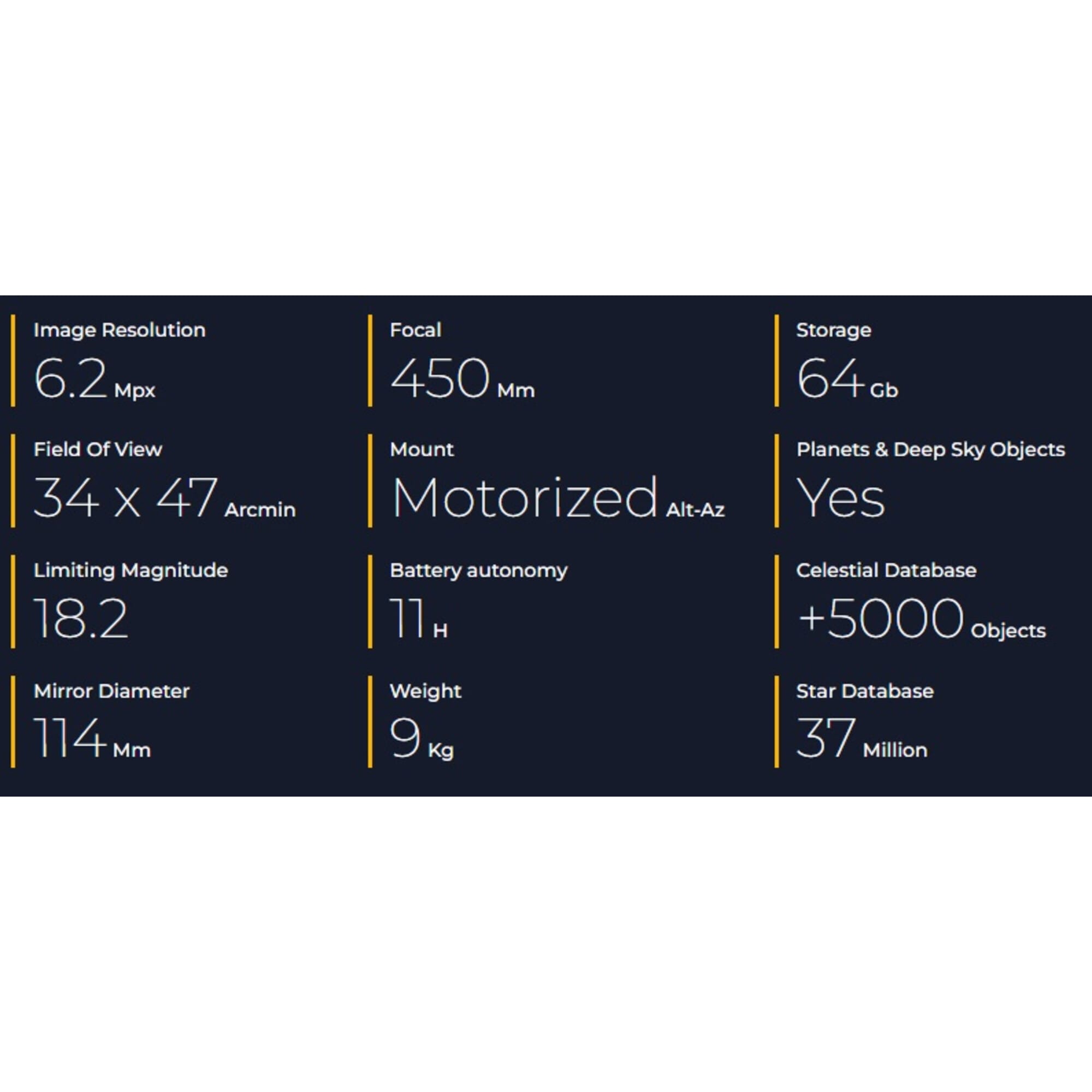 Deze telescoop is geschikt voor beginners en hobbyisten die zonder technische leercurve direct spectaculaire beelden van deep-sky objecten willen zien. Ideaal voor gezinnen of educatieve toepassingen. Niet bedoeld voor klassieke handmatige observatie of professionele astrofotografie met lange belichting. Voor zonobservatie is een speciaal zonnefilter vereist (niet meegeleverd).