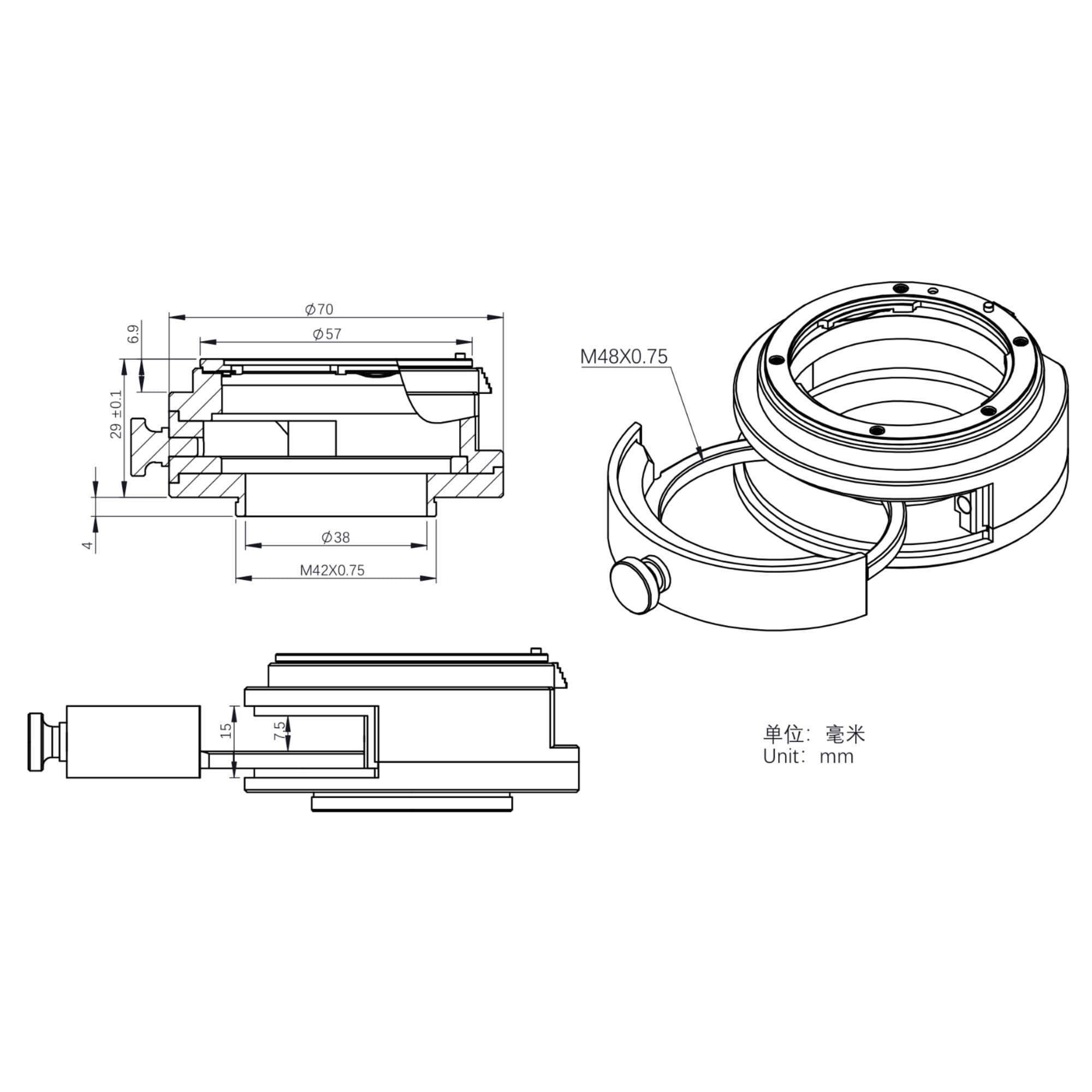 - Montageadapters: M42 × 0,75 en M54 × 0,75